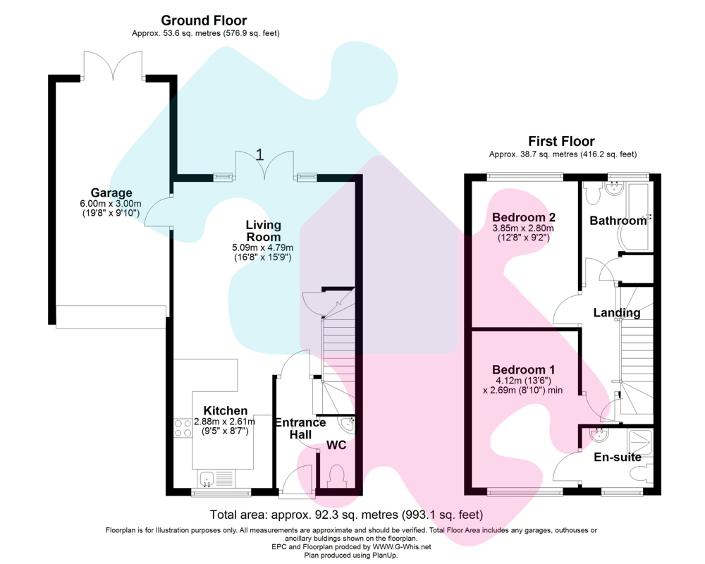 Accommodation downstairs comprises; a light and airy entrance hall, an open-plan living/kitchen with direct access to the garage which also benefits from loft storage above. The stylish kitchen has been refitted by the current owners and is complete with a breakfast bar and integrated appliances whilst the living room also has access to a large under-stairs cupboard. Upstairs there are two generous double bedrooms, the main bedroom benefitting from a modern ensuite shower room, and there is also a family bathroom and an airing cupboard.