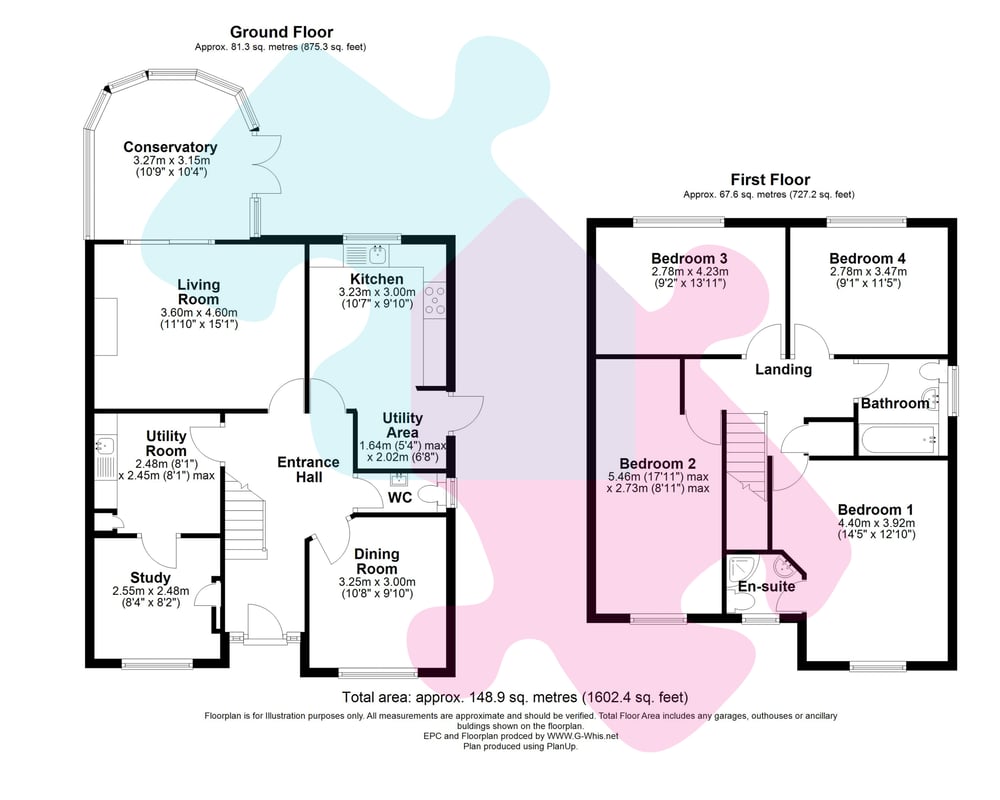 Downstairs there is a dining/family room to the front, a converted garage to provide both a study and a good size utility room. Going further there is the cloakroom, kitchen/breakfast room, living room and conservatory.