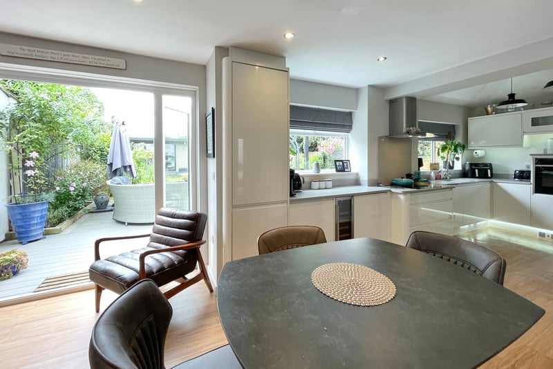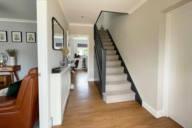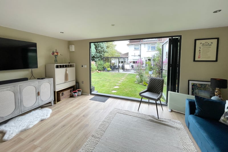 Accommodation comprises; a spacious entrance hall, a snug living room to the front with feature bay window and log-burning stove. Across the back of the house is a stylish, open-plan kitchen/dining/sitting room. The sitting area has French doors opening out to the rear garden, whilst the contemporary kitchen has composite stone work tops, induction hobs and a vaulted ceiling and a door leading to the utility room which has a door for side access. Also downstairs is a modern, downstairs shower room and from the entrance hall is access to a storage room which previously made up part of the garage.