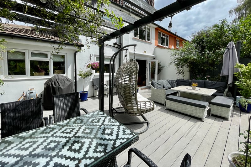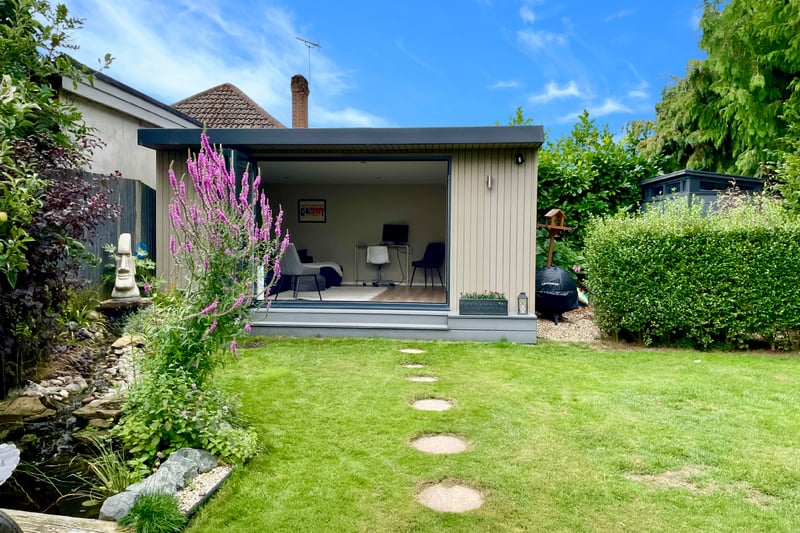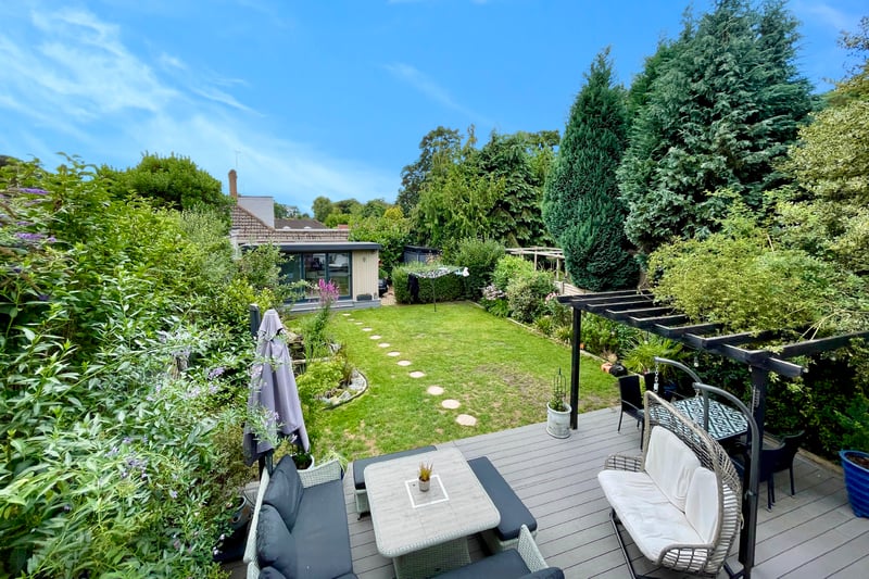 Outside to the rear is a landscaped garden with a sizeable composite decked area providing a great space to entertain and relax, a pond with water feature, flower beds and lawned area. The garden is secluded and also benefits a substantial outbuilding providing leisure space. To the front is a gravel driveway offering parking for several vehicles and an EV charging point. It also worth noting that at the end of the cul-de-sac is a woodland trail leading to Basingbourne Park Playground.