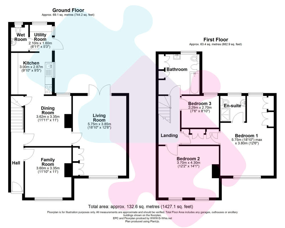 Upstairs are three generous bedrooms; the main room has a walk-through with fitted wardrobes leading to the bedroom which also benefits a dressing area and ensuite shower room. Also upstairs is a sizeable family bathroom
