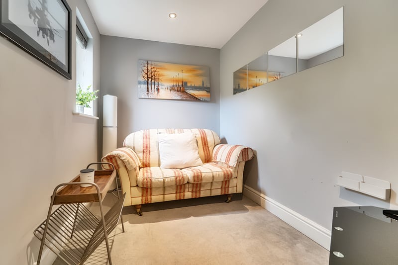 The rear garden has been landscaped with both patio and artificial lawn areas and has a gate leading to the parking area and garaging. The front garden is a large area and is also laid with artificial lawn and has quite a charming courtyard feel.