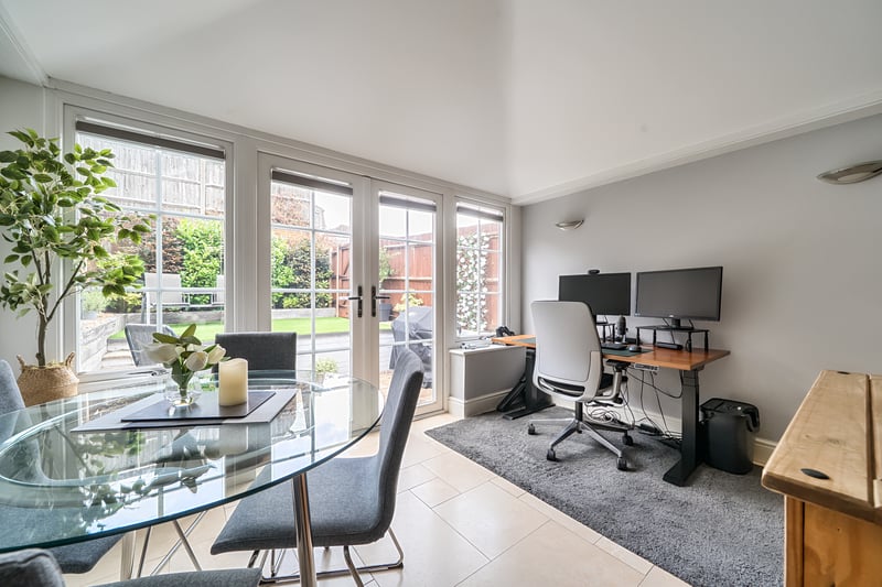 In terms of accommodation, there are three bedrooms, a stylish en-suite shower room and built in wardrobes to the main bedroom and a spacious family bathroom with separate shower cubicle and underfloor heating. Downstairs the kitchen overlooks the woodland to the front, the living room is of a generous size and flows into the orangery area which has both dining and study uses with patio doors leading onto the garden. Please note the entire ground floor has zonal underfloor heating.