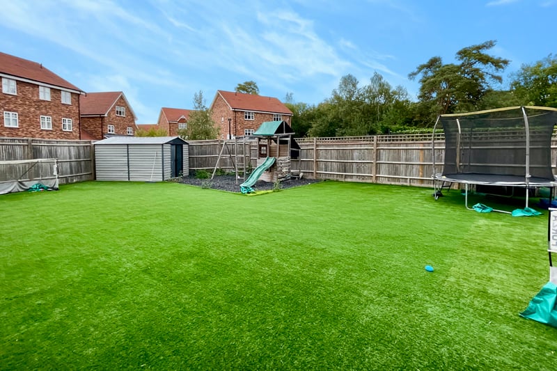 Outside to the rear is a large, level garden with a designated patio area, perfect for entertaining. The majority of the garden is laid to artificial turf and there is also a wood chipped zone for a children’s play area.